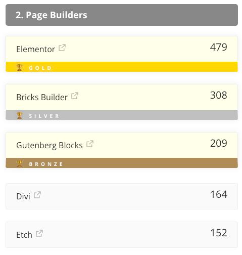 Awards 2025 ページビルダー部門で2位を獲得。ページビルダー「Elementor」(エレメンター)からブリックスへ乗り換える人が続出。エレメンターProでは、毎年数万円の年間サブスクリプションが必要。エレメンターの軽量化には後1〜2年の時間がかかると推測。